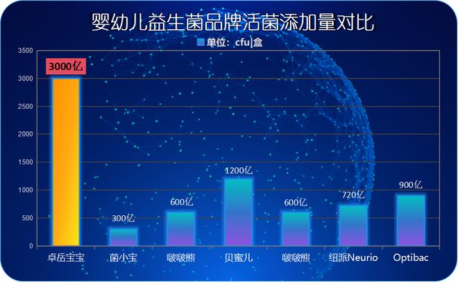 3、看活菌数量,数量决定质量,活菌含量高,效果才更好。卓岳宝宝益生菌每盒3000亿活菌添加量、每条150亿活菌添加量。