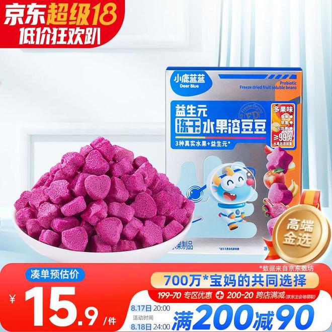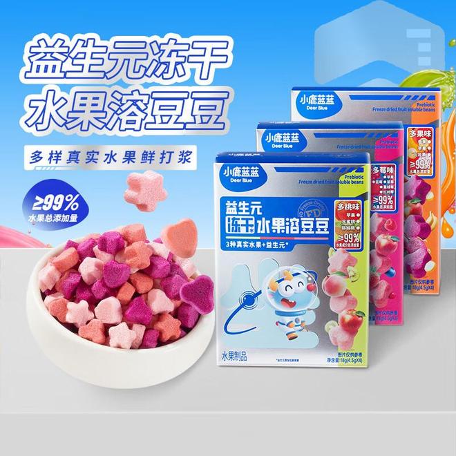 市面上大多数儿童零食要么糖分超标,要么满是香精味。而小鹿蓝蓝的研发团队做了个大胆决定:把新鲜草莓、芒果、蓝莓直接冻干粉碎,再用-35℃真空锁鲜技术封存果香。每颗溶豆的果肉含量高达60%,相当于把半颗草莓浓缩成指尖大小的颗粒。更妙的是添加了益生元低聚果糖——这种“肠道菌群饲料”能促进宝宝吸收钙铁锌,就像给消化系统装了个“营养放大器”。